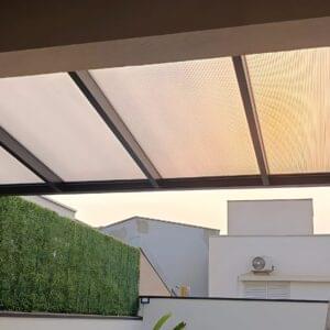 As chapas de policarbonato Reflecta possuem uma camada de proteção que reduz até 9ºc a transmissão de calor para o ambiente interno, comparadas às chapas comuns. Essa característica faz com que sejam ideais para projetos que demandam alta proteção térmica, como: