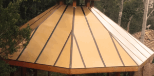 Neste projeto, as chapas de policarbonato Ouro Reflecta de 6mm foram utilizadas em um elegante pergolado de madeira. O resultado? Uma cobertura funcional, sofisticada e com excelente desempenho térmico e estético.